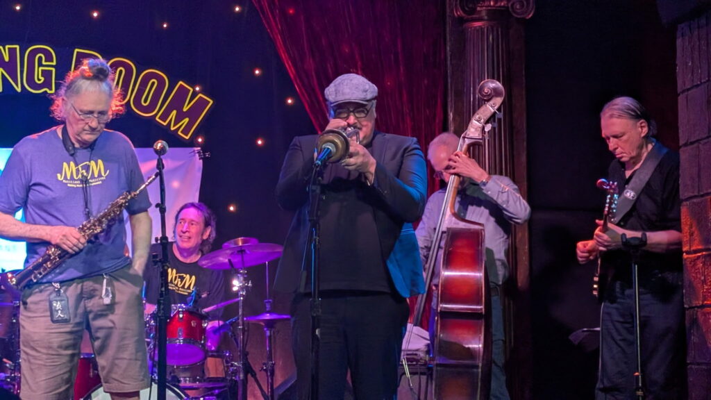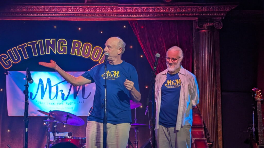 When they finished, Lovano spoke briefly about MFM. Arturo O’Farrill followed with a statement about the sacredness of music. SoSaLa took the mic and shared his thoughts on the necessity of MFM, emphasizing how musicians are essential workers. He gave shout-outs to various friends and musicians, and a special shout-out to his wife, Shigeko, who, along with Sohrab, co-founded MFM.